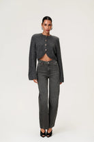 Cessole cardigan kommer i en elegant grå-nyanse og er detaljert med Adoore-knapper for en raffinert finish. Med markerte skulderputer og rette ermer får du et rent, skreddersydd uttrykk. Den cropped lengden skaper en flatterende silhuett, mens det myke og stretchy strikkematerialet gjør den komfortabel til hverdagsbruk.