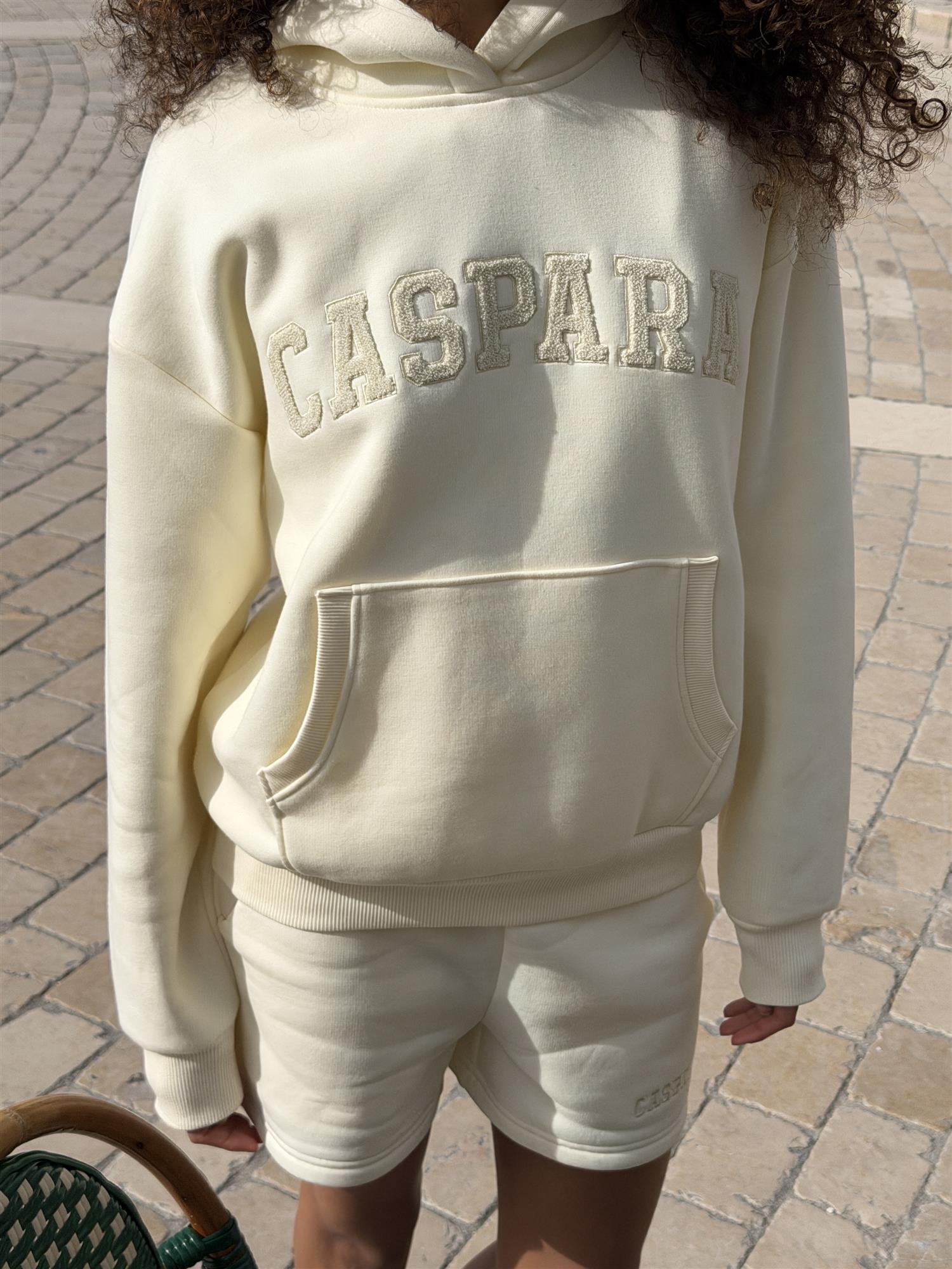 Designet kjennetegnes av en romslig hette, dropped shoulders og voluminøse ermer som gir et avslappet, moderne uttrykk. Den klassiske kangaroo-lommen foran fullfører silhuetten og gjør hoodien både praktisk og stilren.
