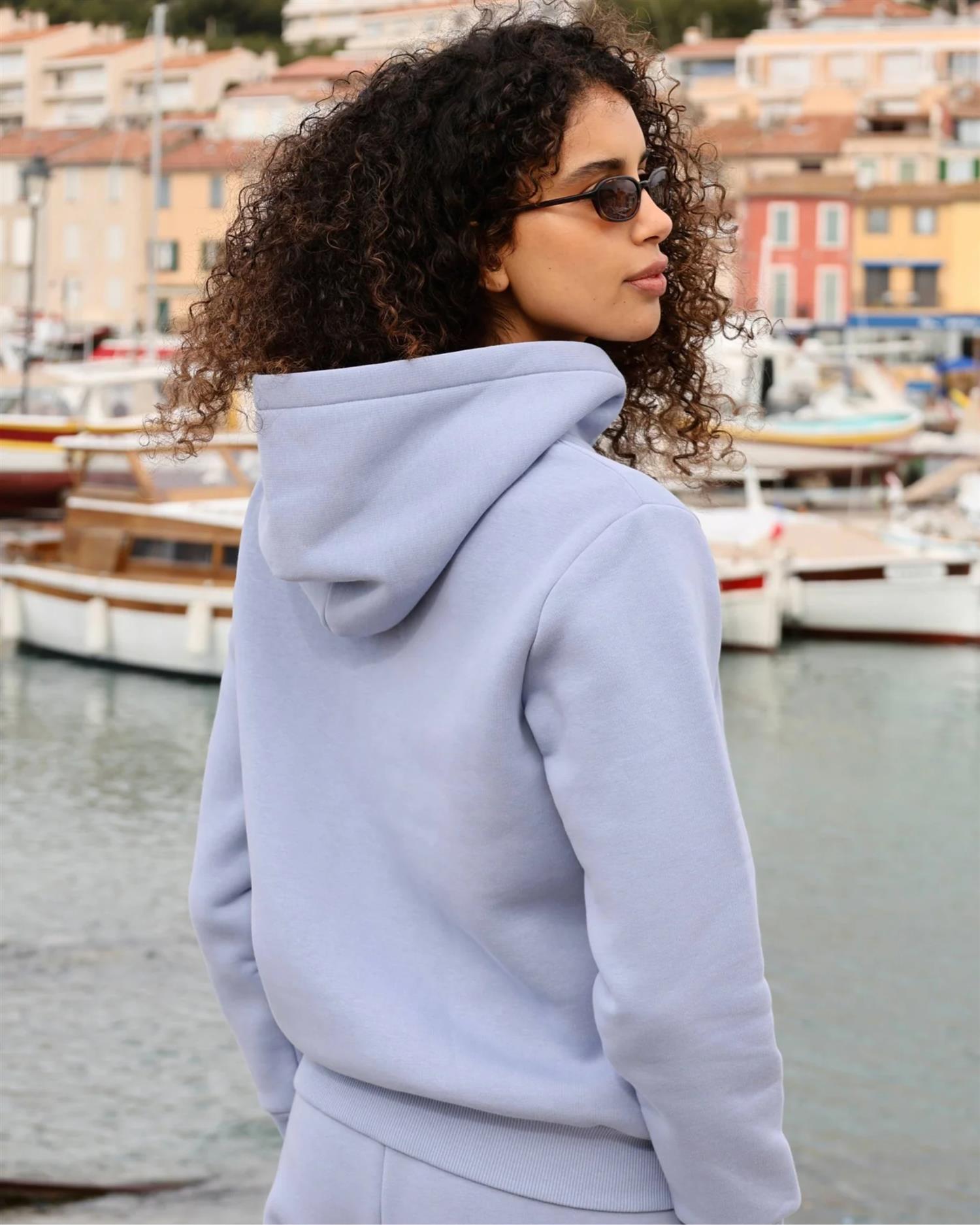 W. All-Star Zip Hoodie i Vintage Blue kombinerer komfort, kvalitet og et moderne uttrykk i en eksklusiv limited edition. Hoodien er laget i en tung bomullsblanding på 420 GSM, som gir en solid og premium følelse samtidig som plagget holder fasongen over tid. Den myke blandingen av organic pima cotton gir en luksuriøs finish og høy slitestyrke.