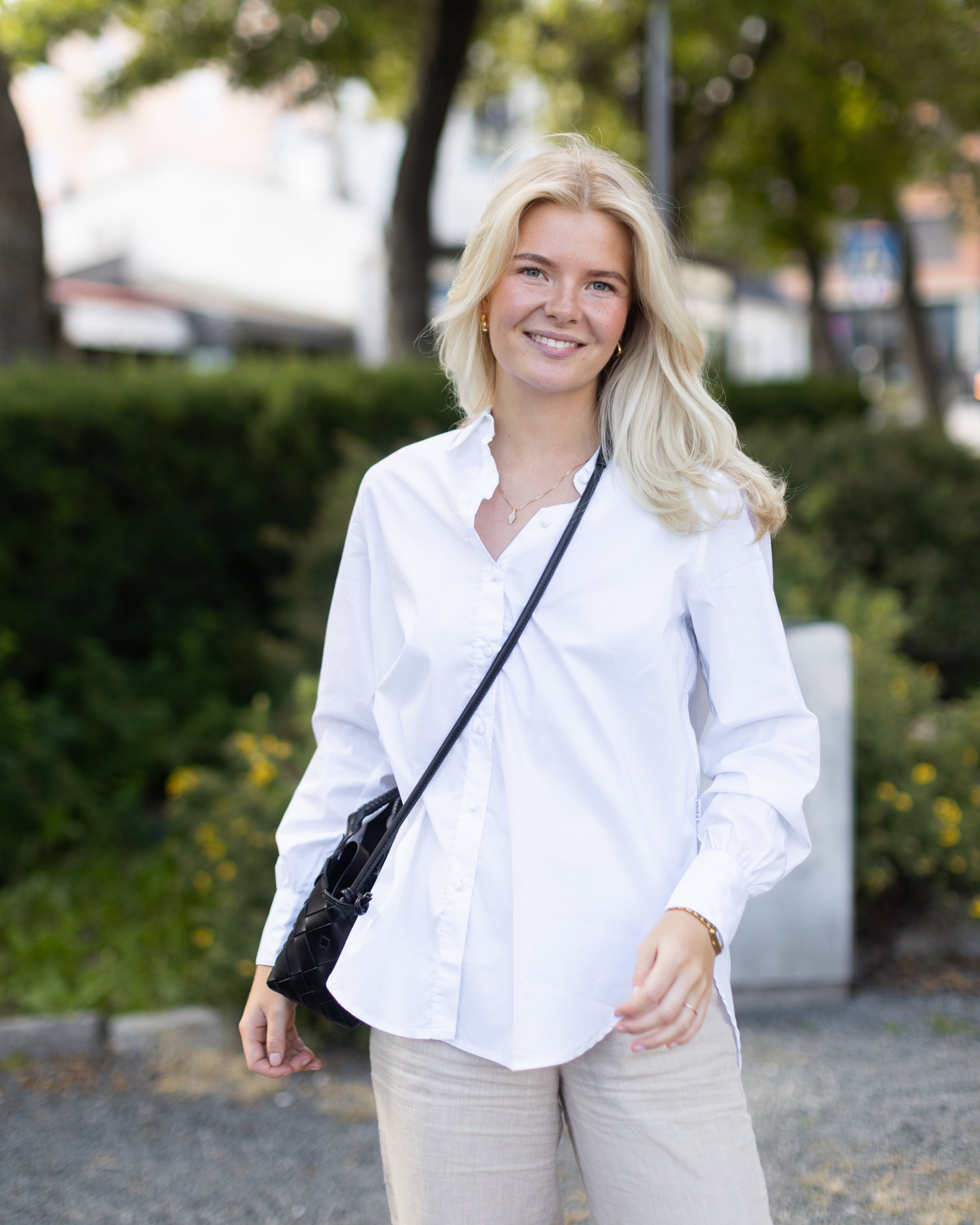 Linni-skjorten er den klassiske hvite skjorten alle trenger i garderoben. Den kan styles på mange forskjellige måter og har en løs passform. Dette allsidige plagget er et tidløst must-have som passer til enhver anledning.