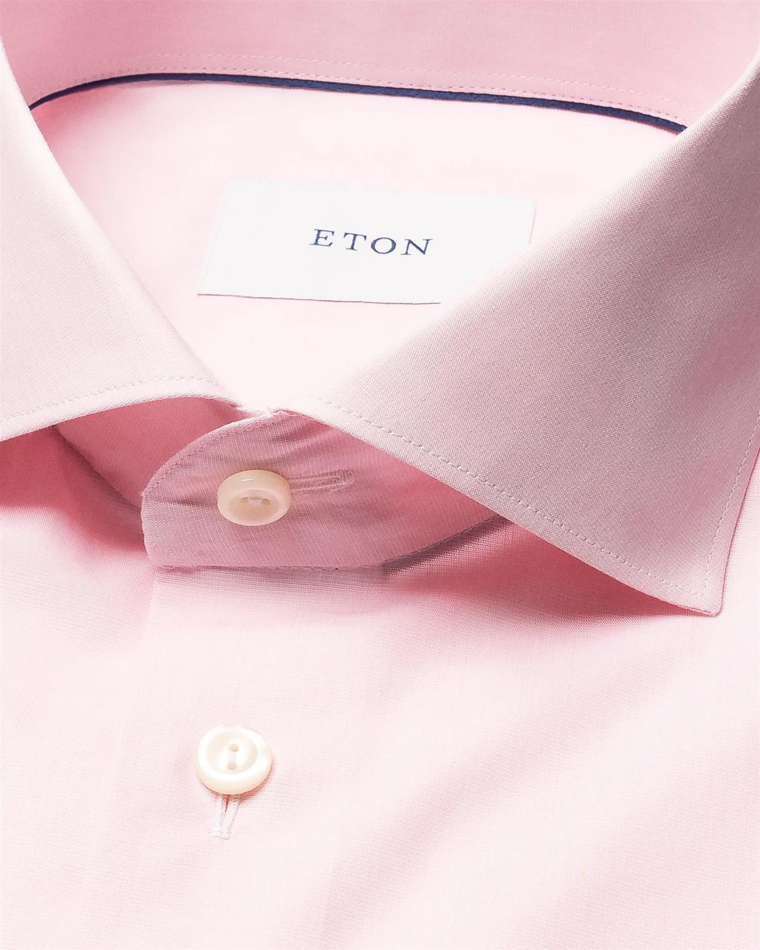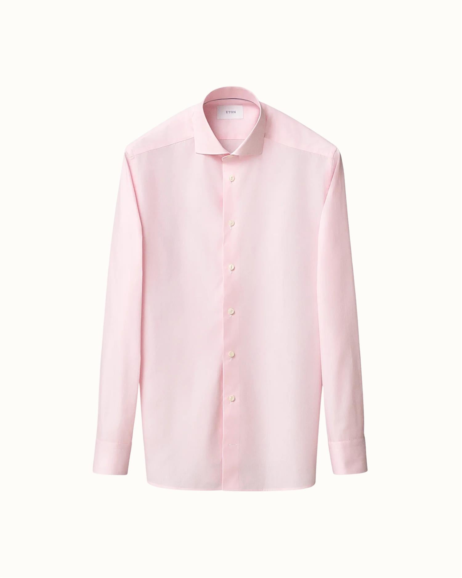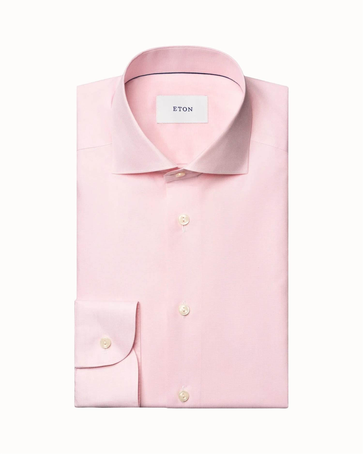 Skjorten er laget i lett og luftig 100 % bomullspoplin med en elegant end-on-end-effekt som gir stoffet en subtil, ujevn struktur. Vevd med hvit base gir den myke og raffinerte farger, samtidig som stoffet er strykefritt og perfekt for varmere temperaturer. Avsluttet med klassiske hvite knapper for et rent og tidløst uttrykk.