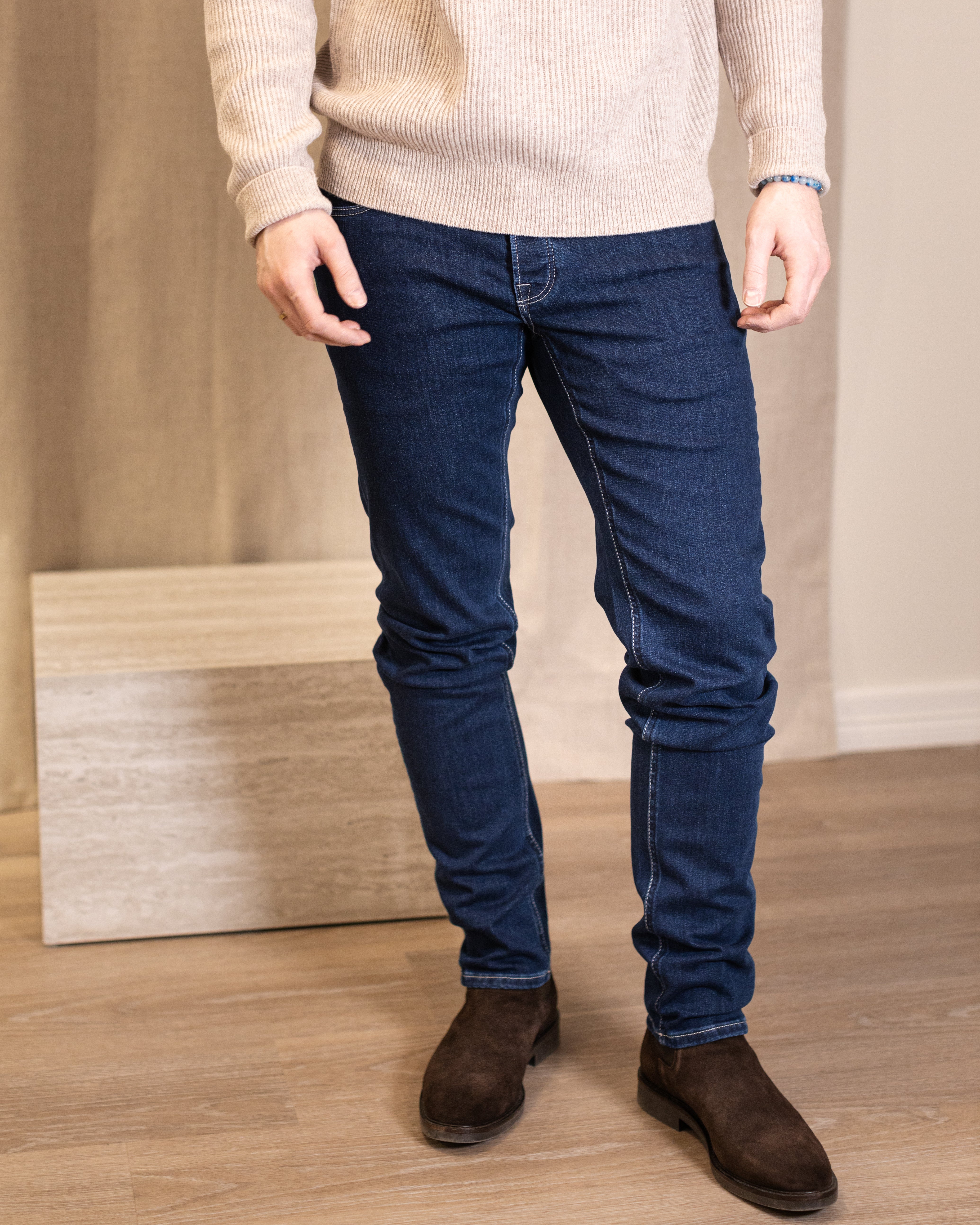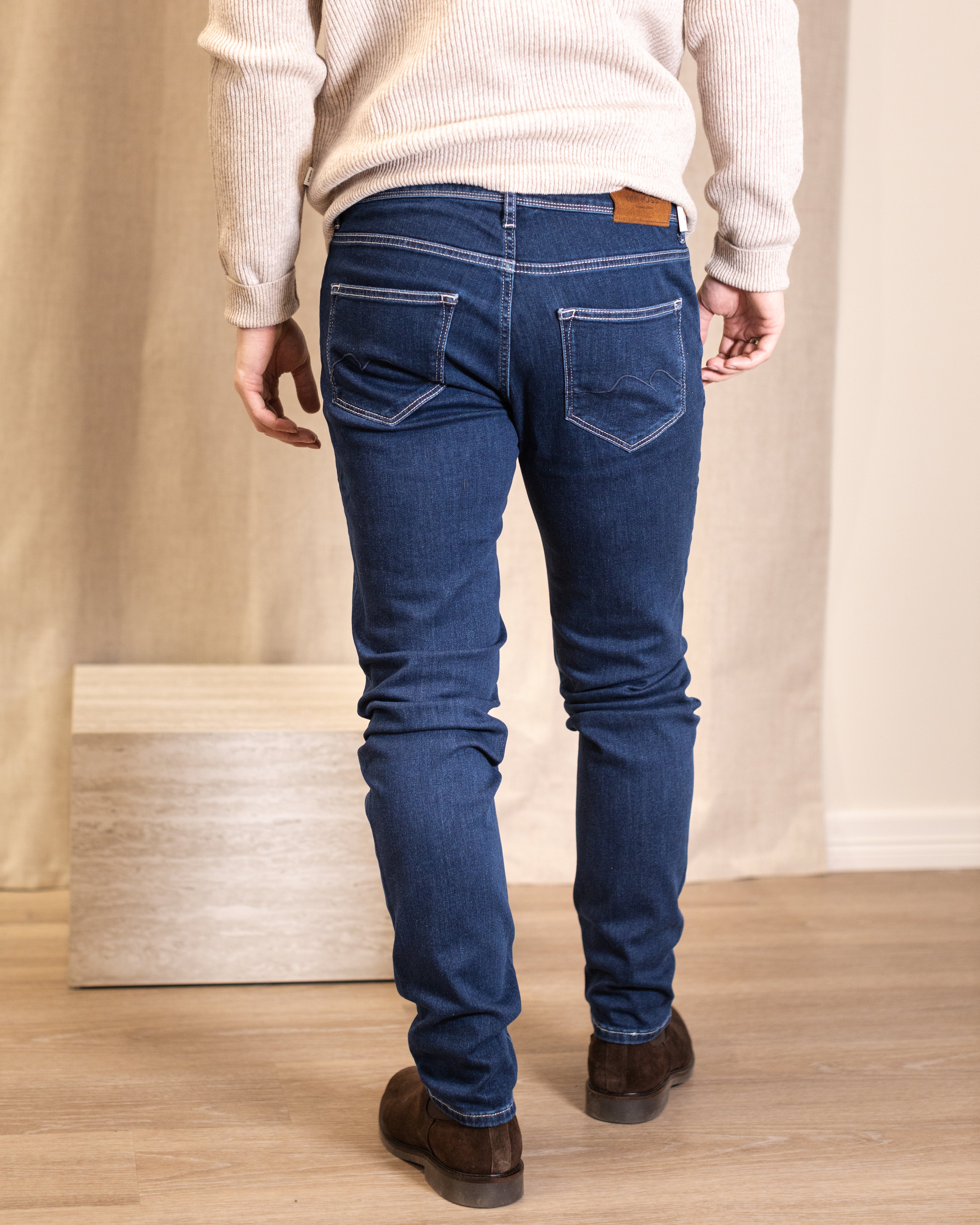 Den blå denimen er vevd med T-400®-fiber, som gir forbedret elastisitet, formstabilitet og langvarig komfort. Resultatet er en jeans av høy kvalitet – myk, slitesterk og behagelig å bruke året rundt.