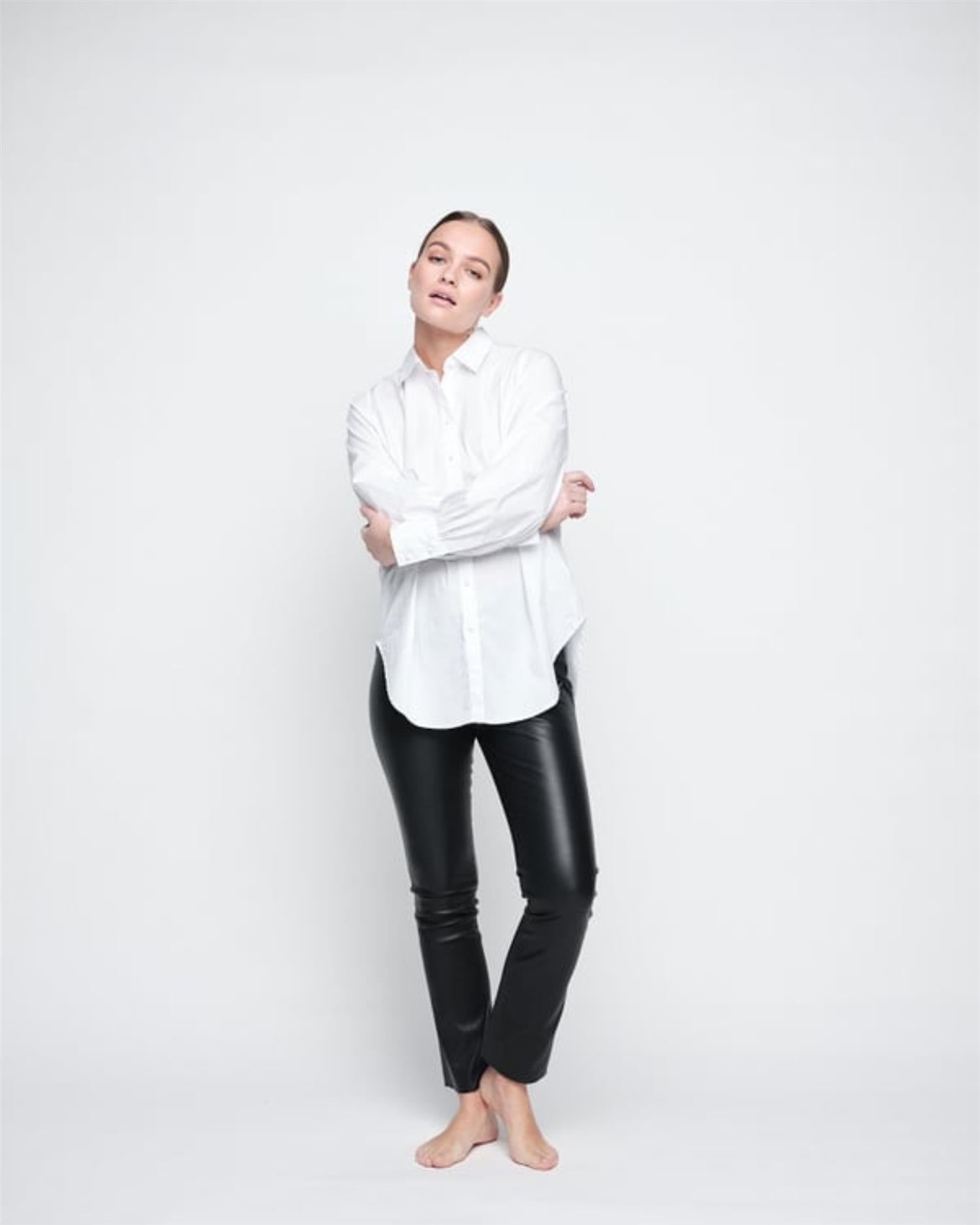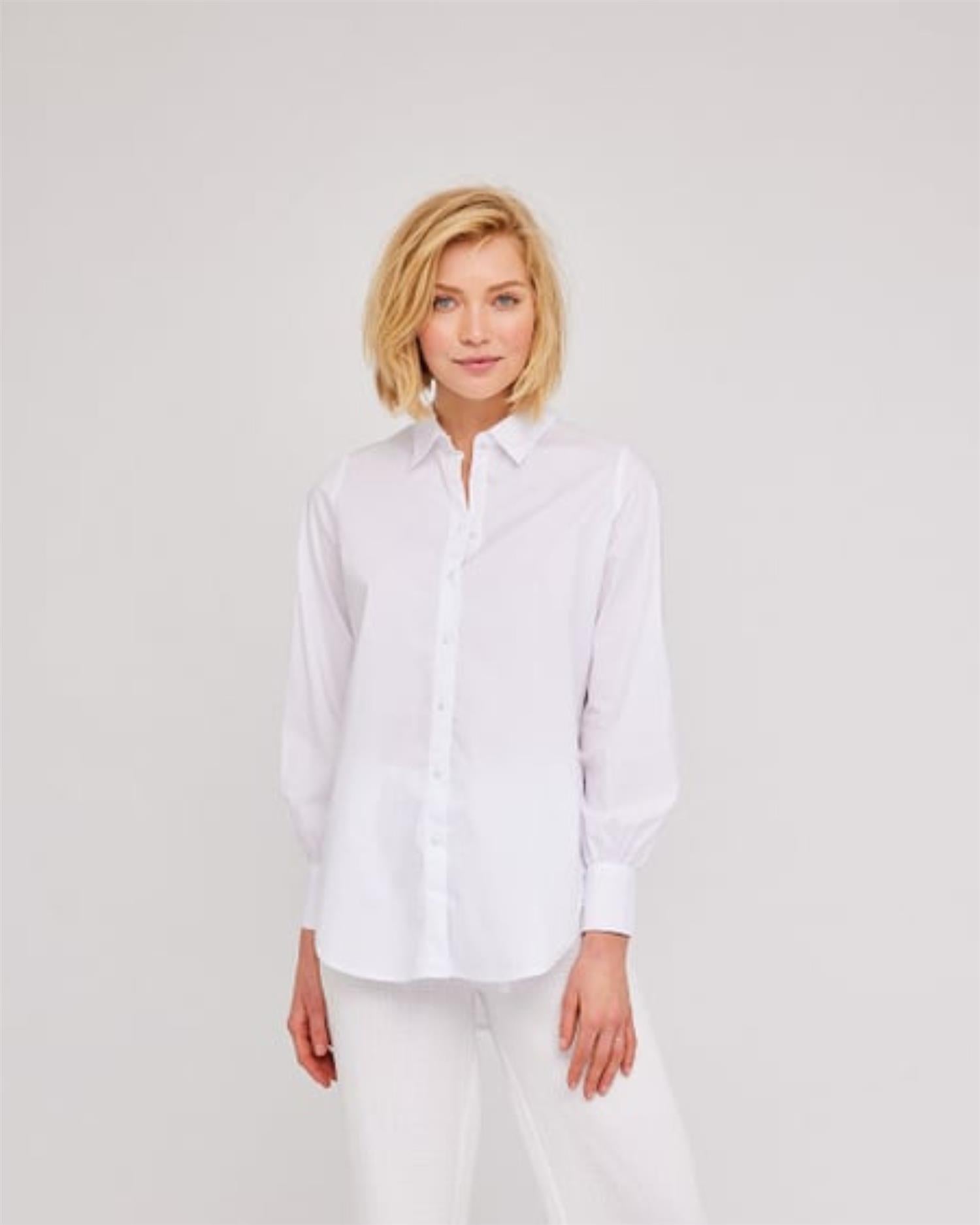 Linni Shirt er den klassiske hvite skjorten alle bør ha i garderoben. Den tidløse passformen og det myke, stretchy stoffet gjør den enkel å style – enten du ønsker et avslappet uttrykk eller et mer pyntet antrekk. Skjorten har en løs passform som faller flatterende på kroppen