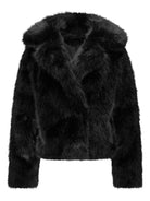 Sofia Fake Fur Jacket er en cropped jakke i fuskepels med et chic og strukturert uttrykk. Jakken har sidelommer, slagkrage og knappelukking i front. En diskret hempe ved kragen gjør det mulig å lukke den helt opp i halsen for en tettsittende passform.