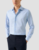 En tidløs skjorte i et elegant stripemønster, laget i Signature Twill – et eksklusivt 100% bomullsstoff med subtil tekstur og balansert glans. Dette gir komfort hele dagen og et skarpt, klassisk uttrykk. Stoffet har også en strykefri finish som gjør den enkel å holde pen.