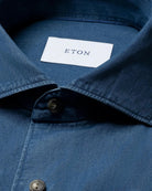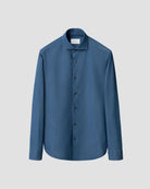 En avslappet skjorte laget av lett 100% bomullsdenim. Stoffet er vevd i Italia og kombinerer slitestyrke med god komfort, perfekt til en moderne garderobe. Skjorten har en Casual Fit med en avslappet, men presis silhuett, bred cut-away-krage, glatt forside og avrundede mansjetter. Et moderne denim-essensielt plagg med et mer raffinert uttrykk.