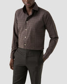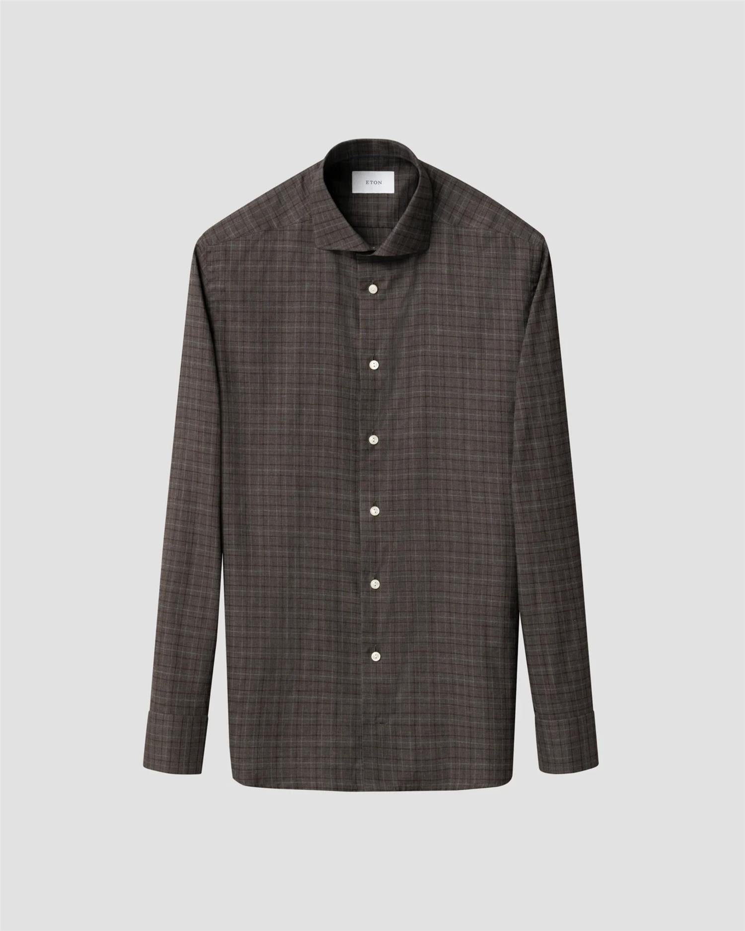 En klassisk penskjorte laget av 100% bomullsflanell med børstet overflate for maksimal mykhet og varme. Stoffet har et tidløst rutemønster og en naturlig, lett struktur som gjør skjorten både elegant og komfortabel – perfekt for vinterens lag-på-lag-antrekk. Avsluttet med ton-i-ton knapper for et sofistikert uttrykk.