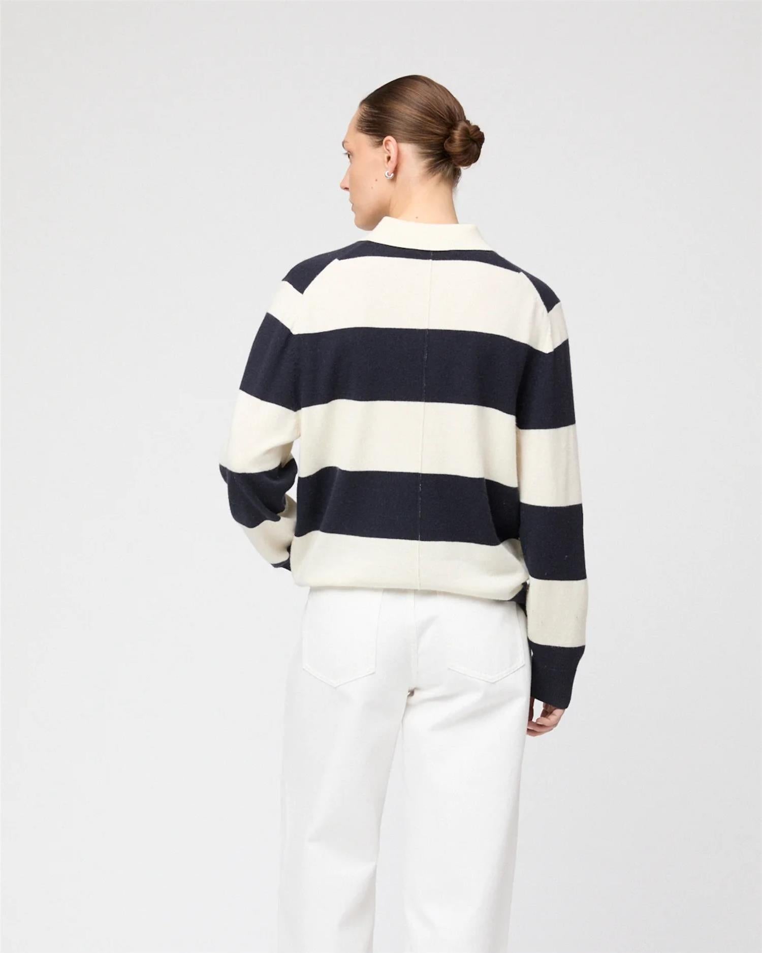 Estate Pique Sweater er nytolket for vårsesongen i børstet ultrafin merinoull. Genseren har en avslappet passform og elegante detaljer som ribbestrikket krage og en diskret knappestolpe. Inspirert av klassiske skoleuniformer gir designet et tidløst, preppy uttrykk som passer perfekt til både hverdags- og mer oppkledde antrekk.