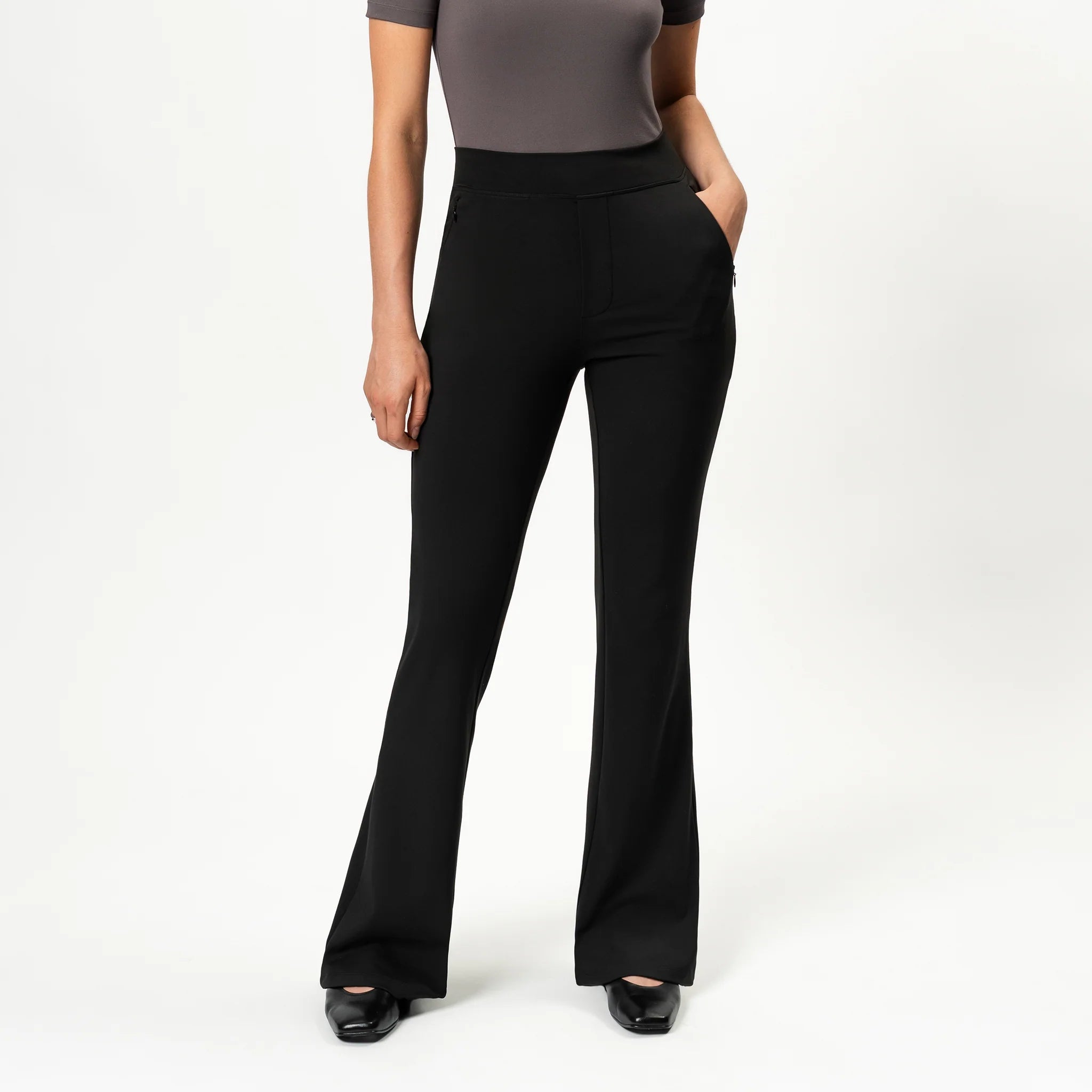 Vi presenterer Asana Bootcut Pants – den ultimate "alt-i-ett"-buksen. Med en flatterende bootcut-silhuett sitter buksene tett over hofter og lår, og har en lett utsving fra kneet og ned. De har diskrete glidelåslommer, høy midje med sømløs midjekant og er laget i et mykt, børstet activewear-stoff. Perfekt til både hverdags, jobb, dans, reise og avslapning – denne buksen kombinerer komfort og stil hver eneste dag.