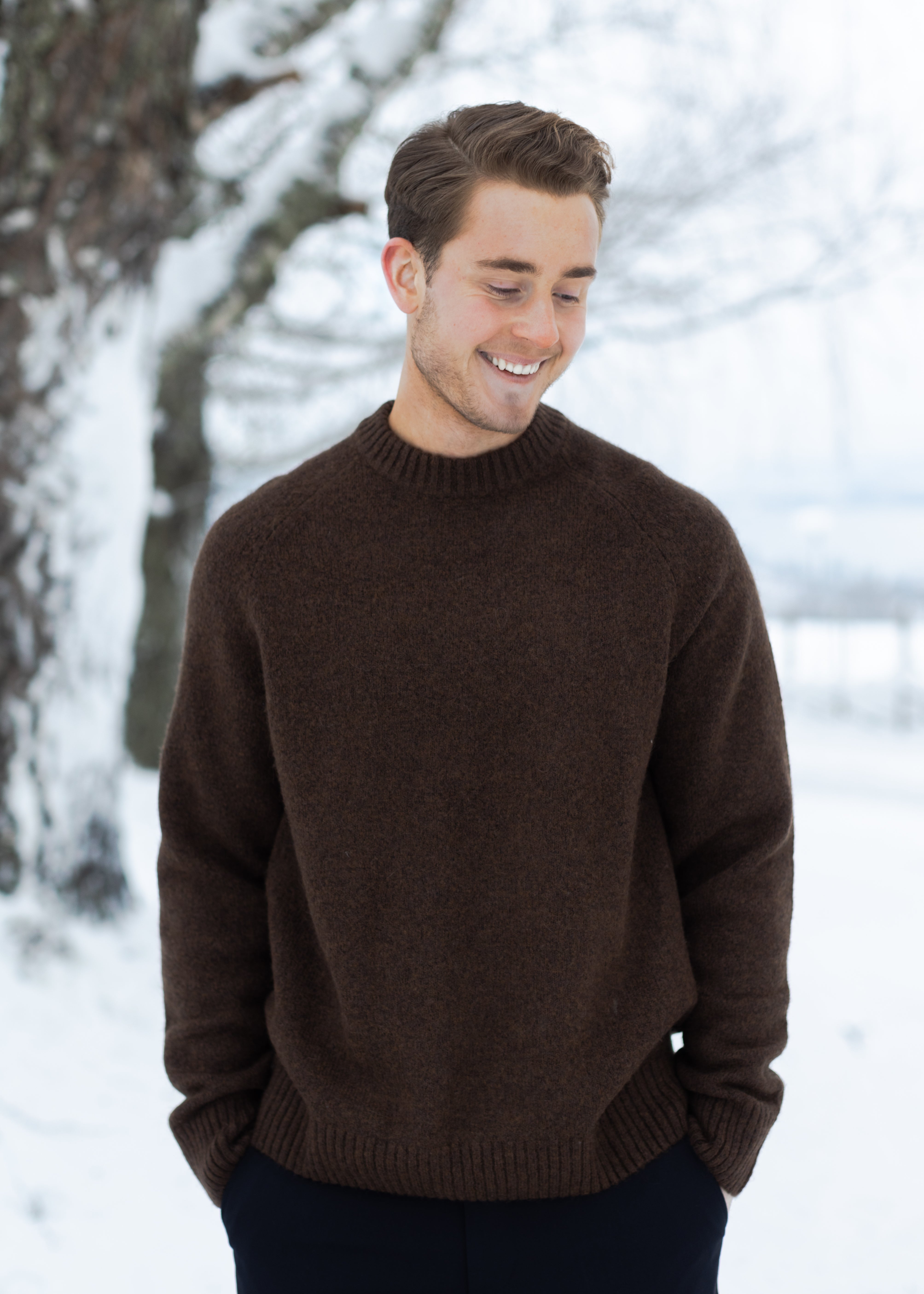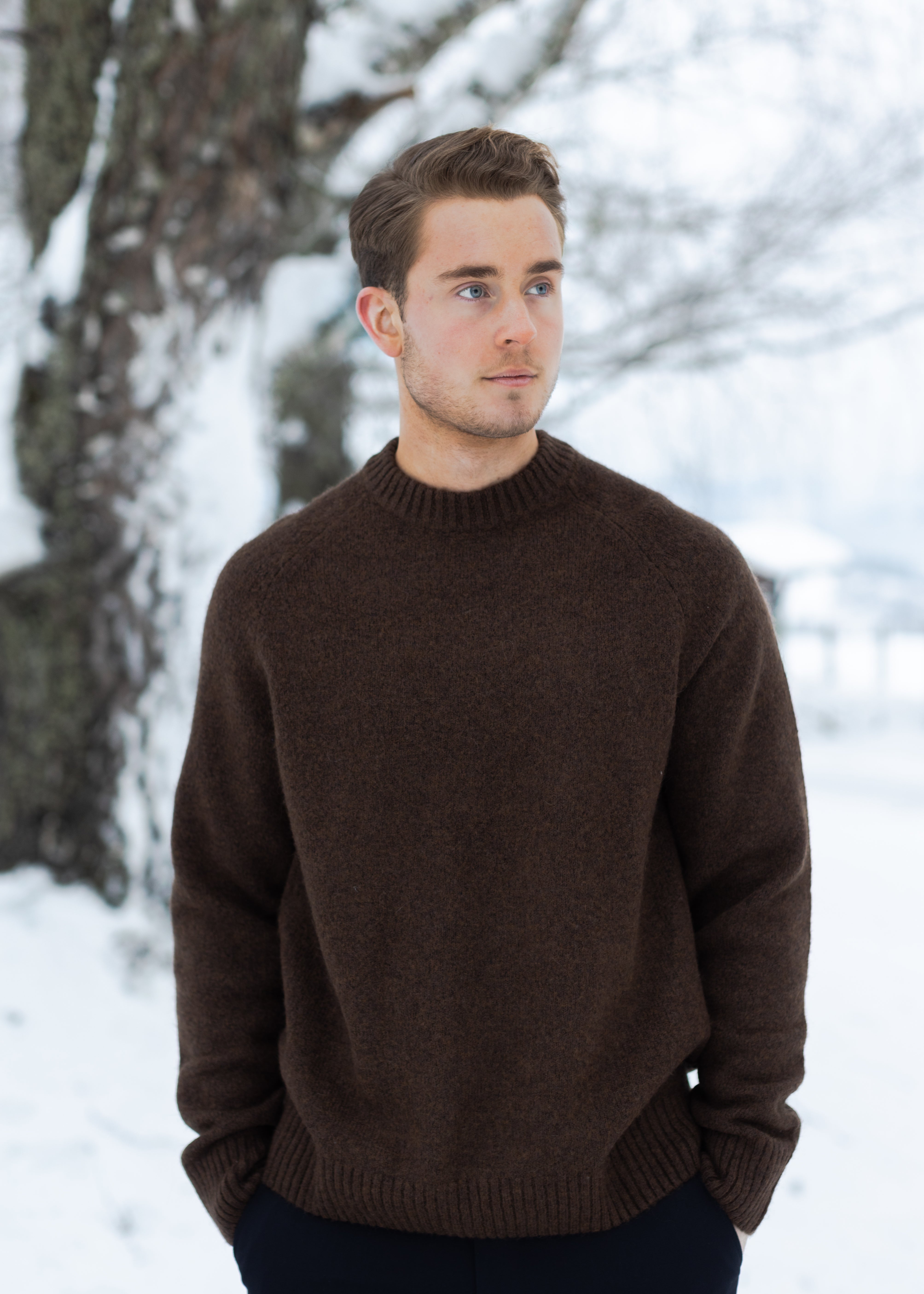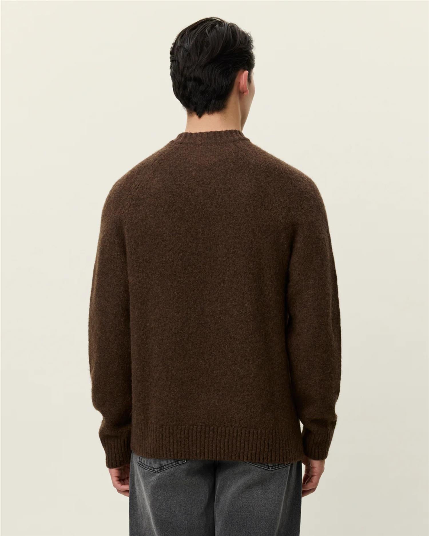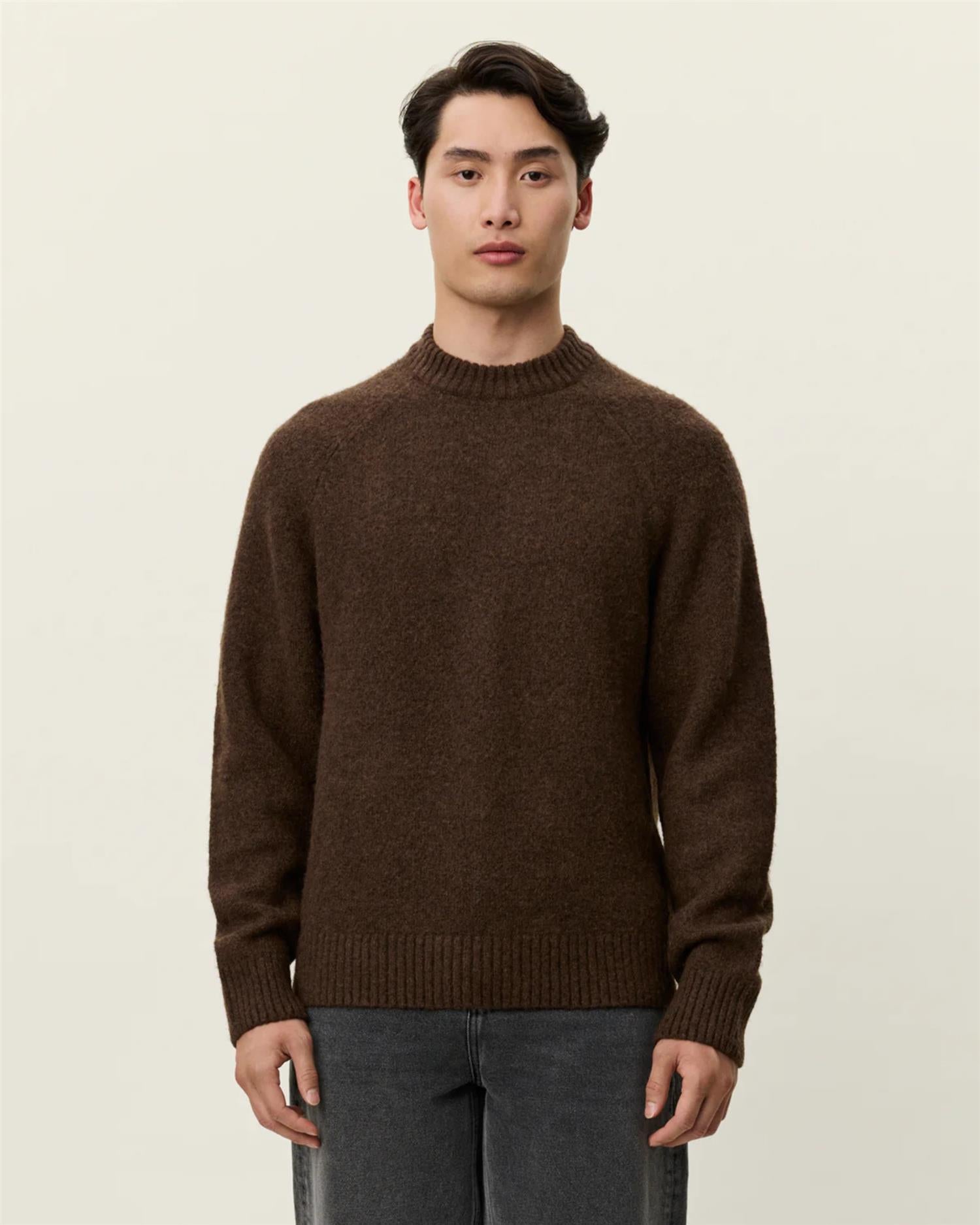 Gilbert er en rustikk crewneck-strikk laget i en varm og myk ull–alpakka-blanding. Den mellomgrove strukturen gir genseren et karakteristisk uttrykk, kombinert med en klassisk regular fit som gjør den enkel å style året rundt.
