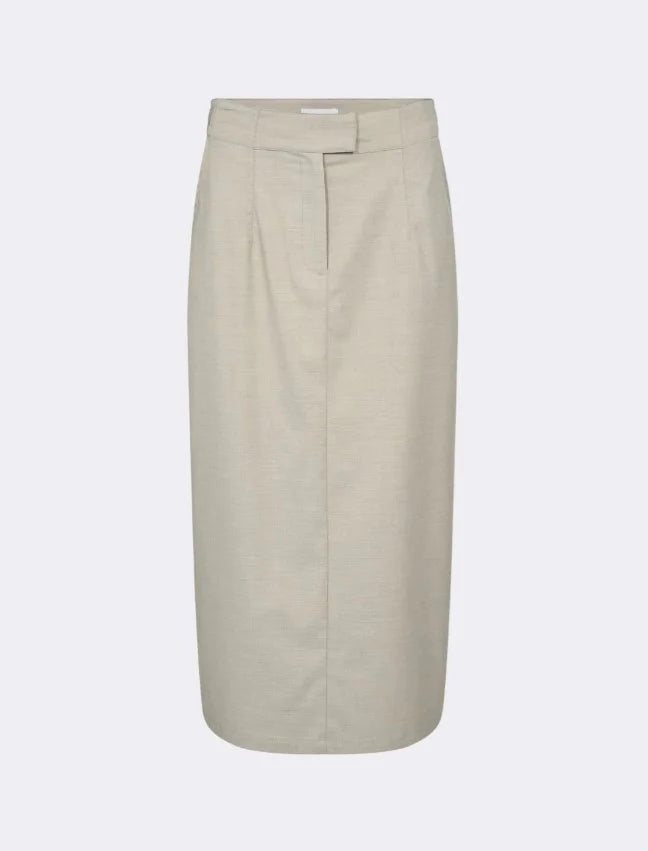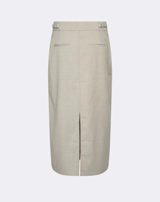 LR-FERNANDA 1 er et midi-skjørt fra Levete Room, hovedsakelig laget av polyester med en blanding av viskose og elastan. Skjørtet har en tettsittende passform, klassisk hektelukking, splitt bak og justerbare spenner i midjen. Disse feminine og stilige detaljene gjør det til et must-have i enhver garderobe.