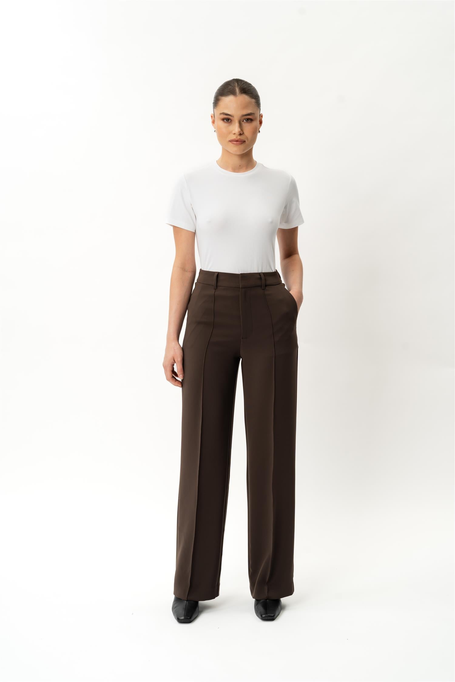 Crepe Relaxed Trouser- Mørk Brun