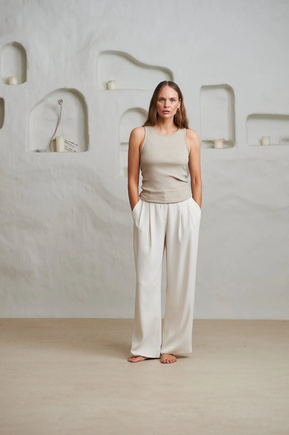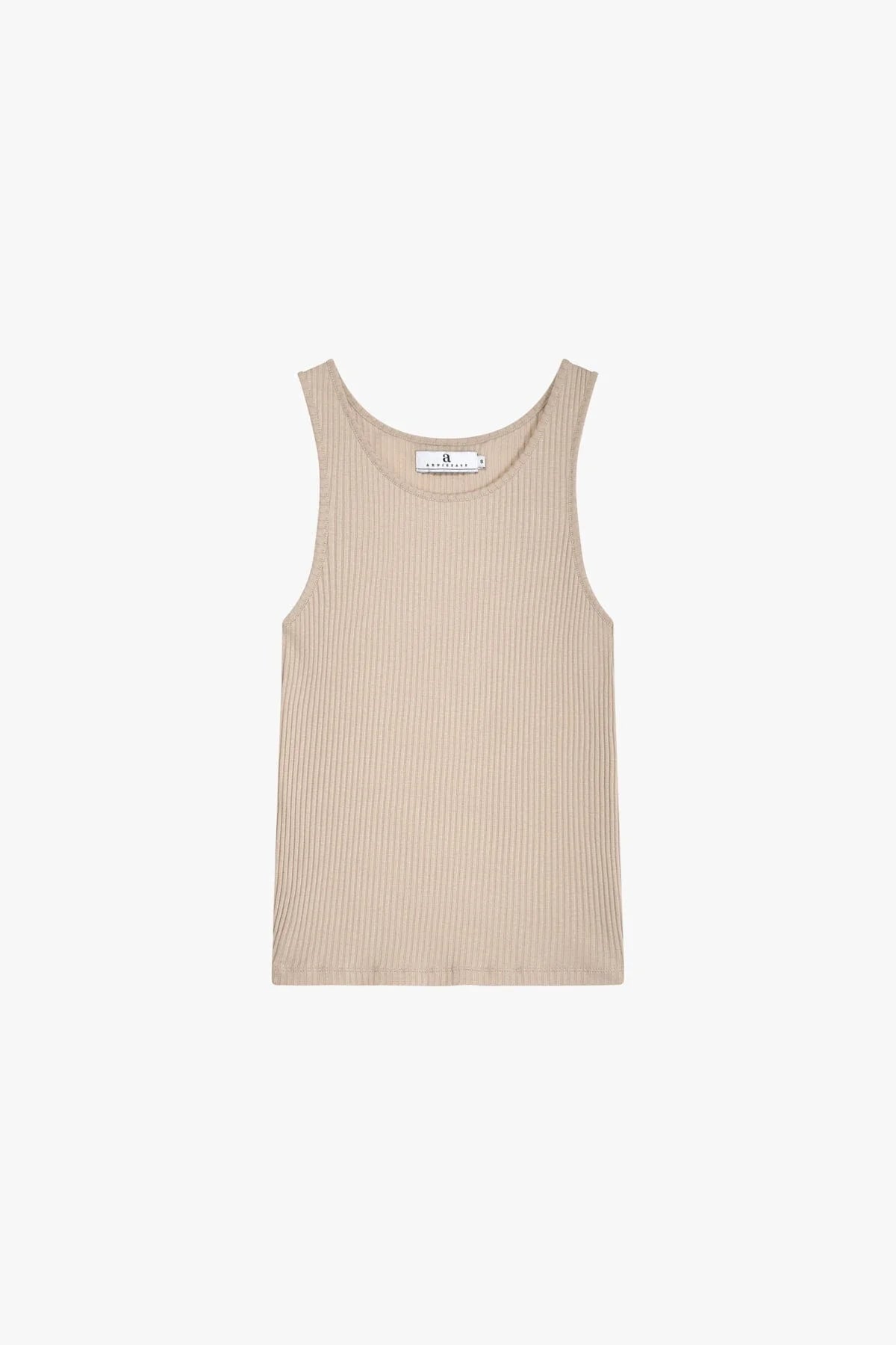 Ribbestrikket singlet laget i en myk og behagelig bomullsblend. Modellen kommer i en figursydd fasong med en ettersittende passform.