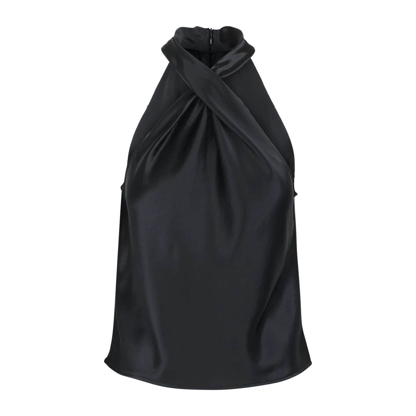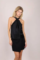 Angel Top fra Urban Pioneers. Angel Top er en elegant topp i satin med et vakkert tvunnet halterneck-design. Det luksuriøse stoffet faller nydelig og gir en sofistikert look. Perfekt for både festlige anledninger og stilfulle daglooks. Angel Top er en allsidig topp som kan styles både opp og ned. Normal i størrelsen.