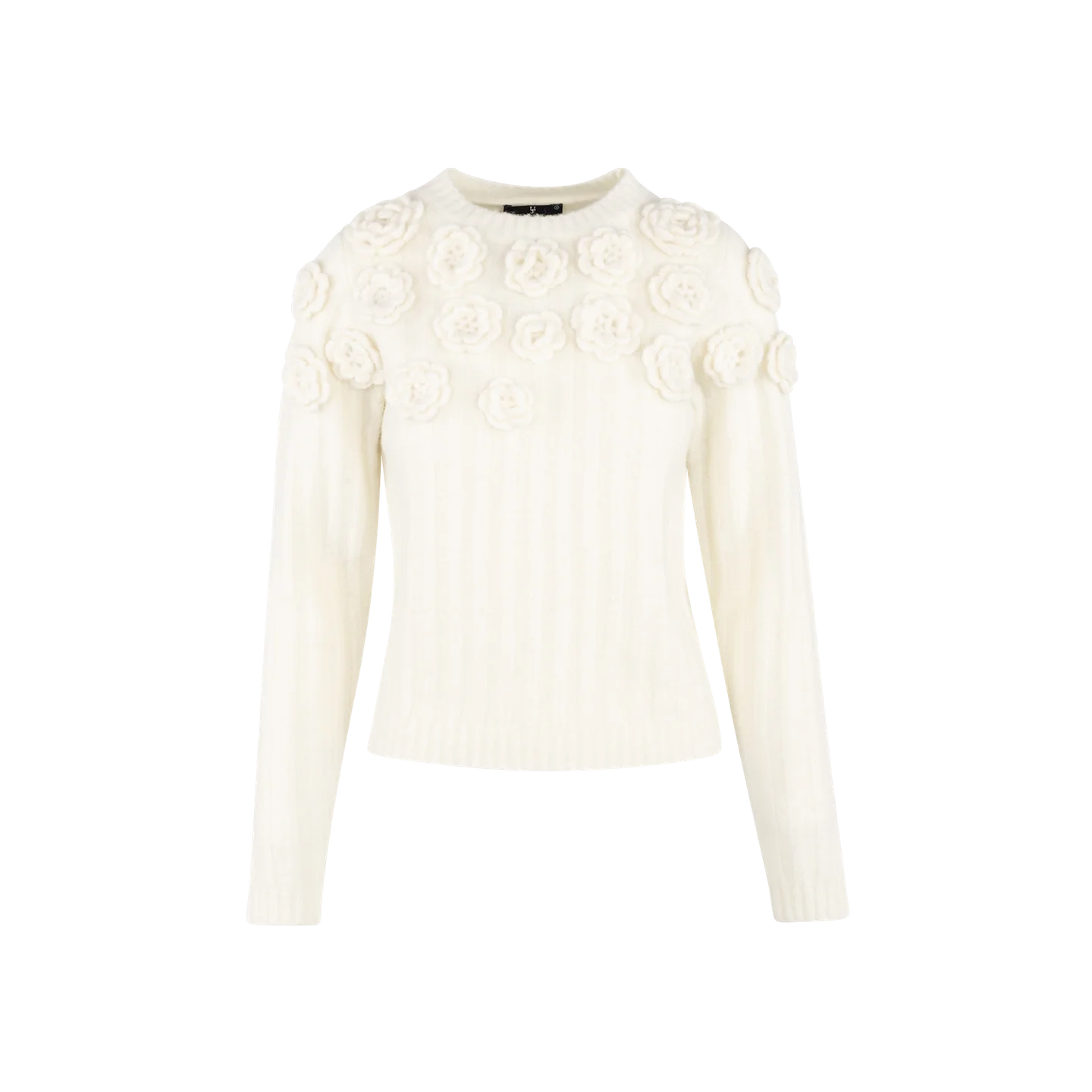 Mimmi Sweater fra Urban Pioneers. Denne stilige genseren har en iøynefallende blomsterapplikasjon som tilfører et snev av eleganse til garderoben din. Den vanlige passformen og klassiske runde halsen gjør det til et allsidig plagg som kan pyntes opp eller ned. Normal i størrelsen.